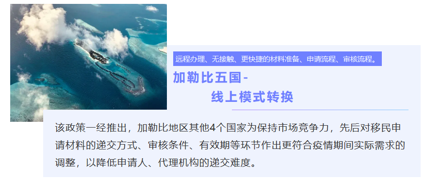 疫情期間,海外投資項(xiàng)目很大程度上都受到了沖擊,加勒比地區(qū)的國家由于其項(xiàng)目的非居住性的特點(diǎn),以及移民局靈活的操作方式,在移民項(xiàng)目都受到較大影響的環(huán)節(jié)下仍保持可觀的吸引力。