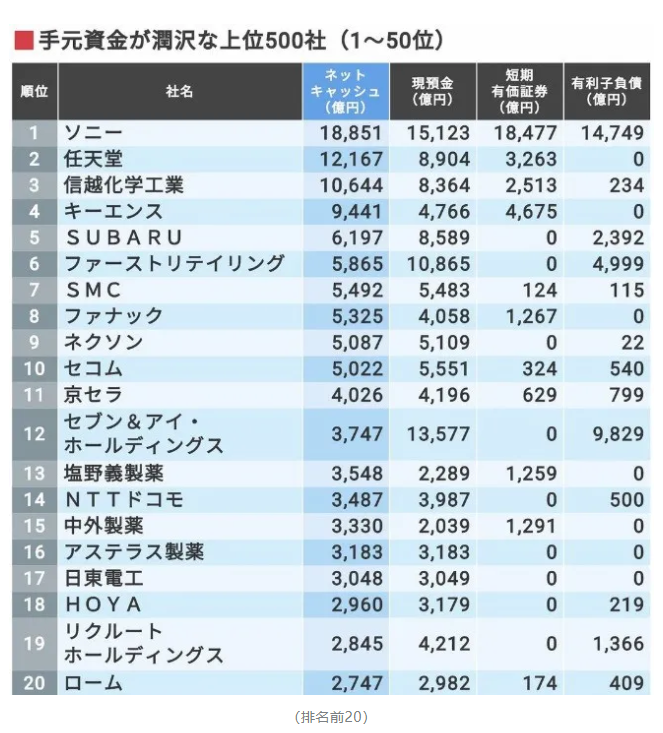 日本知名財(cái)經(jīng)雜志《東洋經(jīng)濟(jì)》剛剛發(fā)布了一個2020前半年日本企業(yè)賬上現(xiàn)金狀況的報(bào)告,前三名分別是索尼、任天堂和專做半導(dǎo)體硅、聚氯乙烯等原材料供應(yīng)的信越化學(xué)工業(yè)集團(tuán)。
