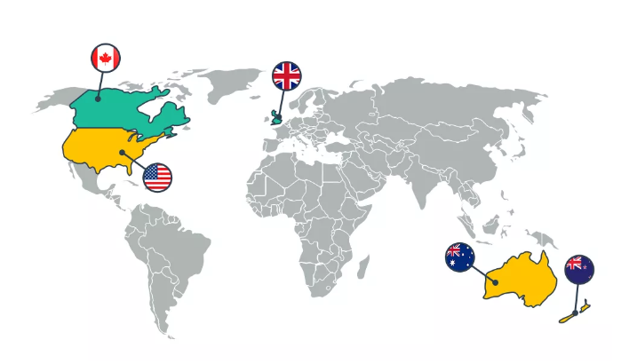 美國的國際政策是天下布武,哦串戲了,是全球盟友,認為從東亞到中東,從歐洲到非洲,都有自己的同盟國家。但其實核心盟友,依舊是傳統(tǒng)的 Anglo-Saxon 盎格魯撒克遜聯(lián)盟,也就是最近一些媒體總提到的“五眼聯(lián)盟”:美國、英國、加拿大、澳大利亞和新西蘭。